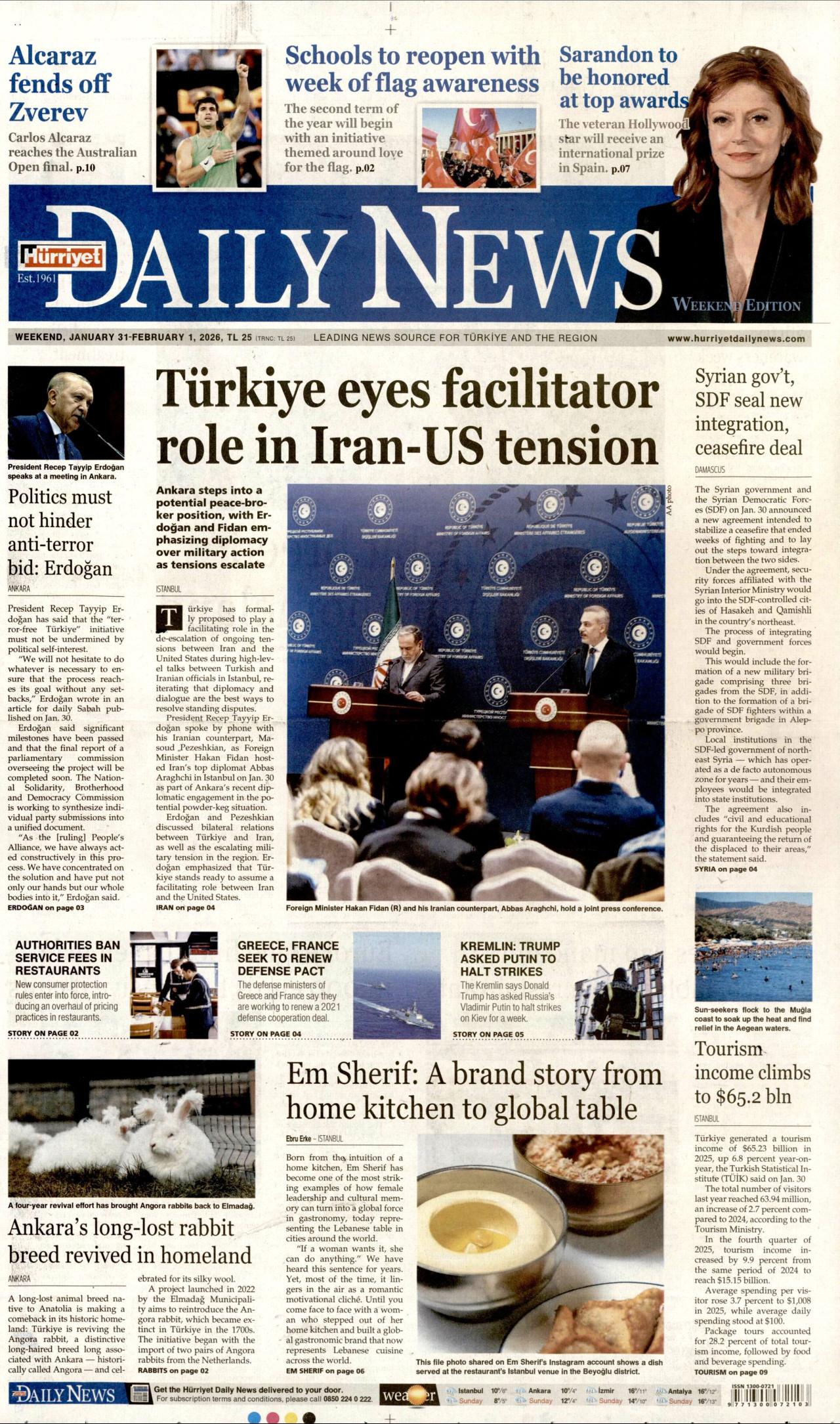 HÜRRİYET DAİLY NEWS Gazetesi 31 Ocak 2026, Cumartesi Günü Manşeti